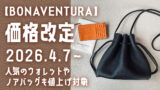 BONAVENTURA(ボナベンチュラ)の一部製品が2025年3月18日(火)に価格改定されることが、3月4日(火)に公式サイトにて発表されました。
